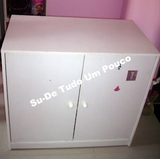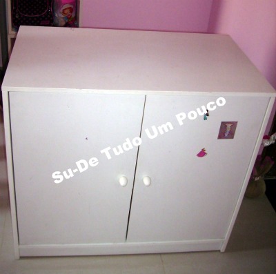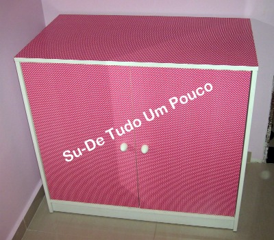 Na era do Papel Con-Tact colorido, fizemos de um armário branco, já amarelado, um armário novo e muito mais alegre.