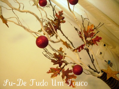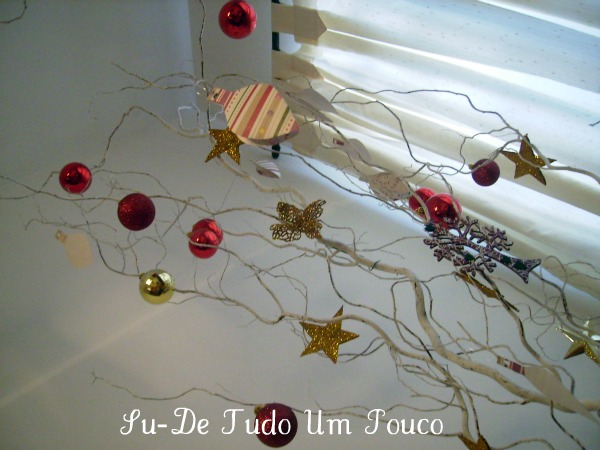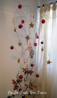 Este ano quis fazer diferente, montei uma árvore com galhos secos e emprestei a minha mãe a minha outra árvore.