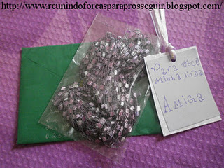 "A minha amigona, minha guria linda, Pastora Sueli me presenteou com este lindo colar que ela mesma fez; aliás ela faz para vender tá! Se tu quiseres um é só fazer uma visitinha para ela! Tudo o que a Su faz é lindo e barato.