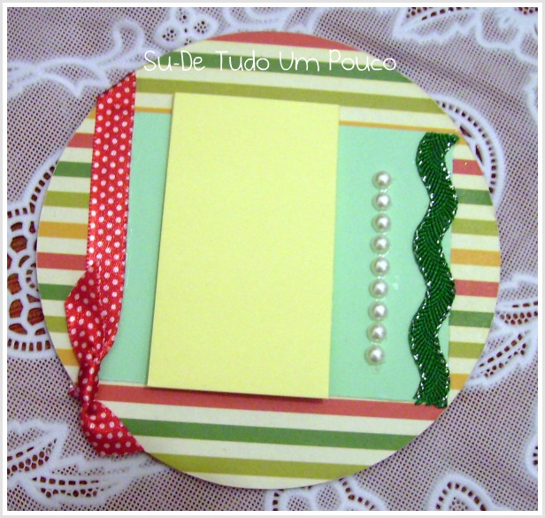 A pessoa recebe seu cartão e quando abre uma surpresa, um bloquinho de anotações diferente, feito com CD, ela pode deixar fixo na geladeira ou em sua mesa de trabalho.