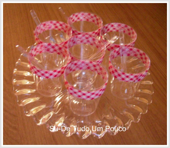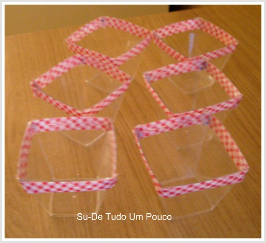 Esta eu fiz com viés xadrez vermelho em dois modelos de copos.