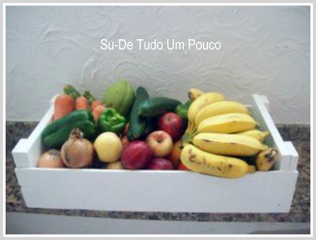 Fiz a alguns dias atrás, um caixote branco para minha tia Sinay, ela queria colocar frutas e legumes dentro dele e deixar a mostra na sua cozinha. Esse é um modelo de caixote mais baixo, ideal para isto.