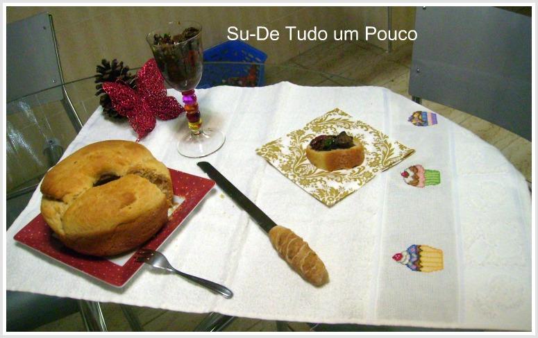 Foi em uma tarde, ganhei este lindo pano de copa e para comemorar aproveitei a ocasião, me servi de um delicioso café da tarde, pão feito em casa com antepasto de berinjela, uma delícia.